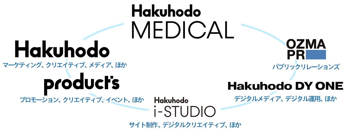 博報堂メディカルは、メディカルの専門性の高さと、博報堂DYグループのマーケティングソリューションを融合させ、クライアントのビジネス成果に貢献いたします。